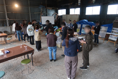 当日はあいにくの雨でしたが、役場が管理している倉庫を使って開催することになりました。
