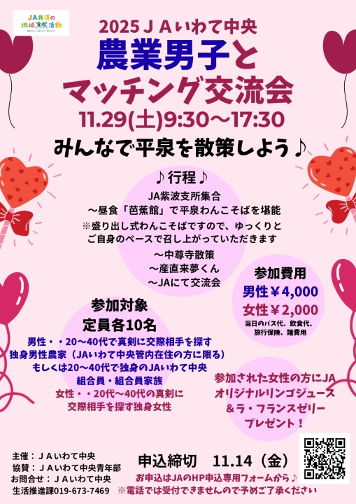 <イベント紹介> 2025.11.29 JAいわて中央 農業男子とマッチング交流会 ―みんなで平泉を散策しよう♪―