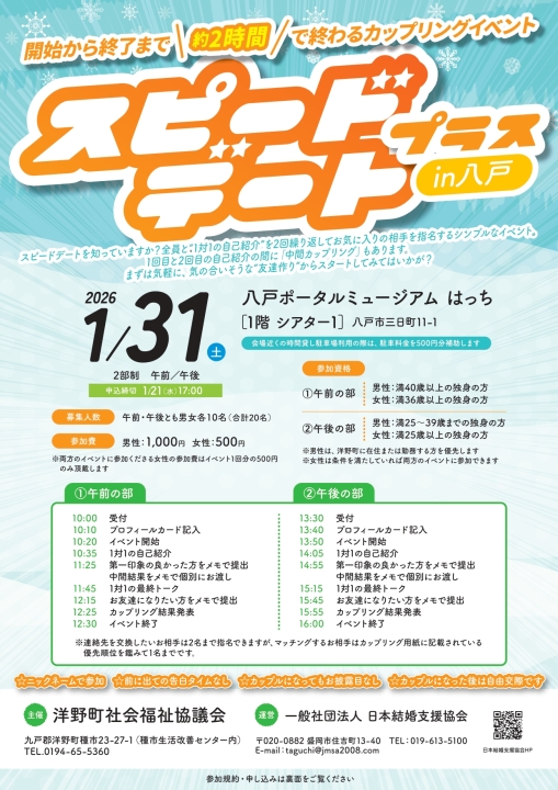 2026.01.31 スピードデートプラスin八戸 (午前・午後の部) を開催します