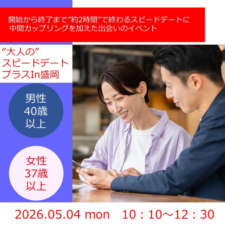 【緊急開催!】2026.05.04 【午前】 大人のスピードデートプラスin盛岡 を開催します