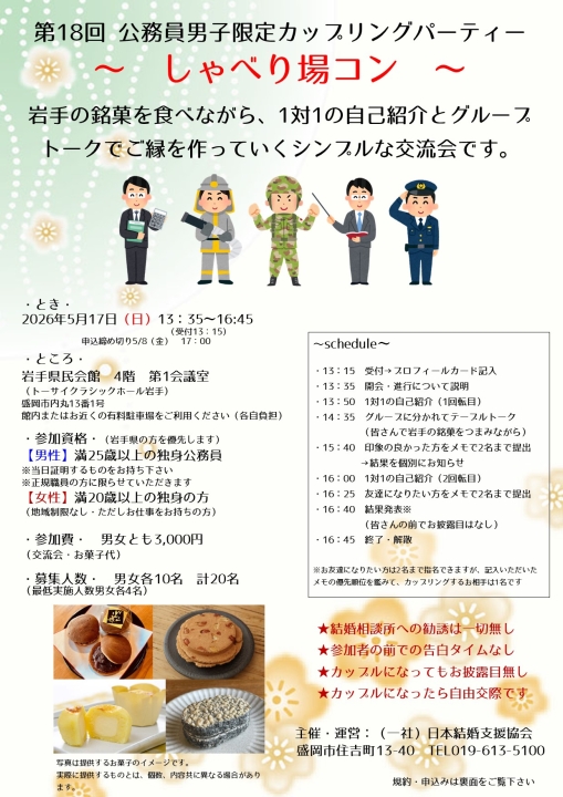 2026.05.17 第18回 公務員男子限定カップリングパーティー ~しゃべり場コン~ を開催します